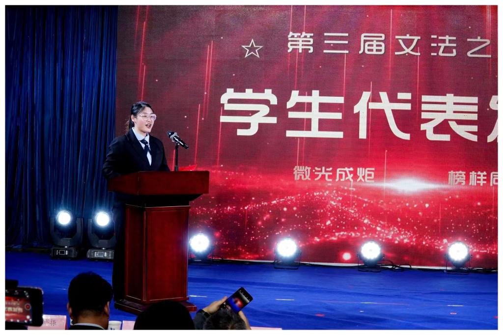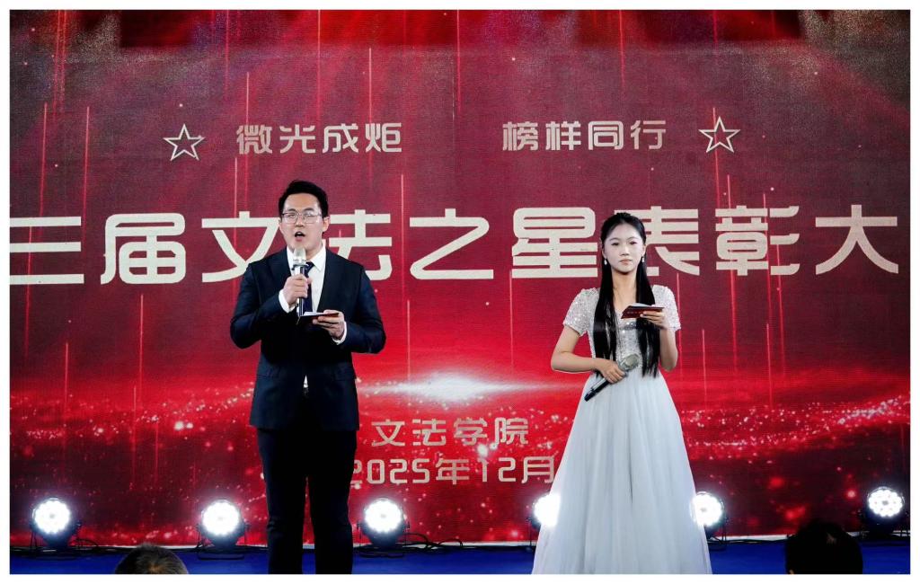 大会最后,原创朗诵《榜样的力量——致文法之星》以诗朗诵的形式礼赞榜样,激励了广大师生在对标先进中明确方向,在见贤思齐中砥砺前行。