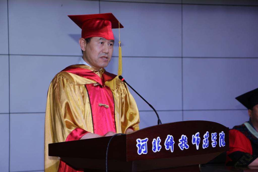 典礼在庄严的《国歌》声中拉开序幕,靳占忠作了精彩致辞。他回顾了公司三年来在研究生教育、转型发展试点工作、筹建“河北海洋大学”、集中办学取得的成绩和进展,同时送给即将踏上崭新征程的硕士生们四点希望:敏而好学,树立终身学习的理念;修身养性,不断提高自身的道德水平;爱岗敬业,积极投身民族复兴的事业;锐意创新,争做时代发展的“弄潮儿”。衷心祝愿毕业研究生们在广阔的新天地里,做出新的业绩,为祖国增光,为母校添彩!无论毕业生们身在何方,母校都永远惦记大家,支持大家,祝福大家!科师永远是你们的家,是你们的坚强后盾!请常回家看看!校学位评定委员会主席靳占忠教授、副主席杨越冬教授、副主席李佩国教授,为每一位硕士学位获得者颁发证书、拨正流苏并合影留念。