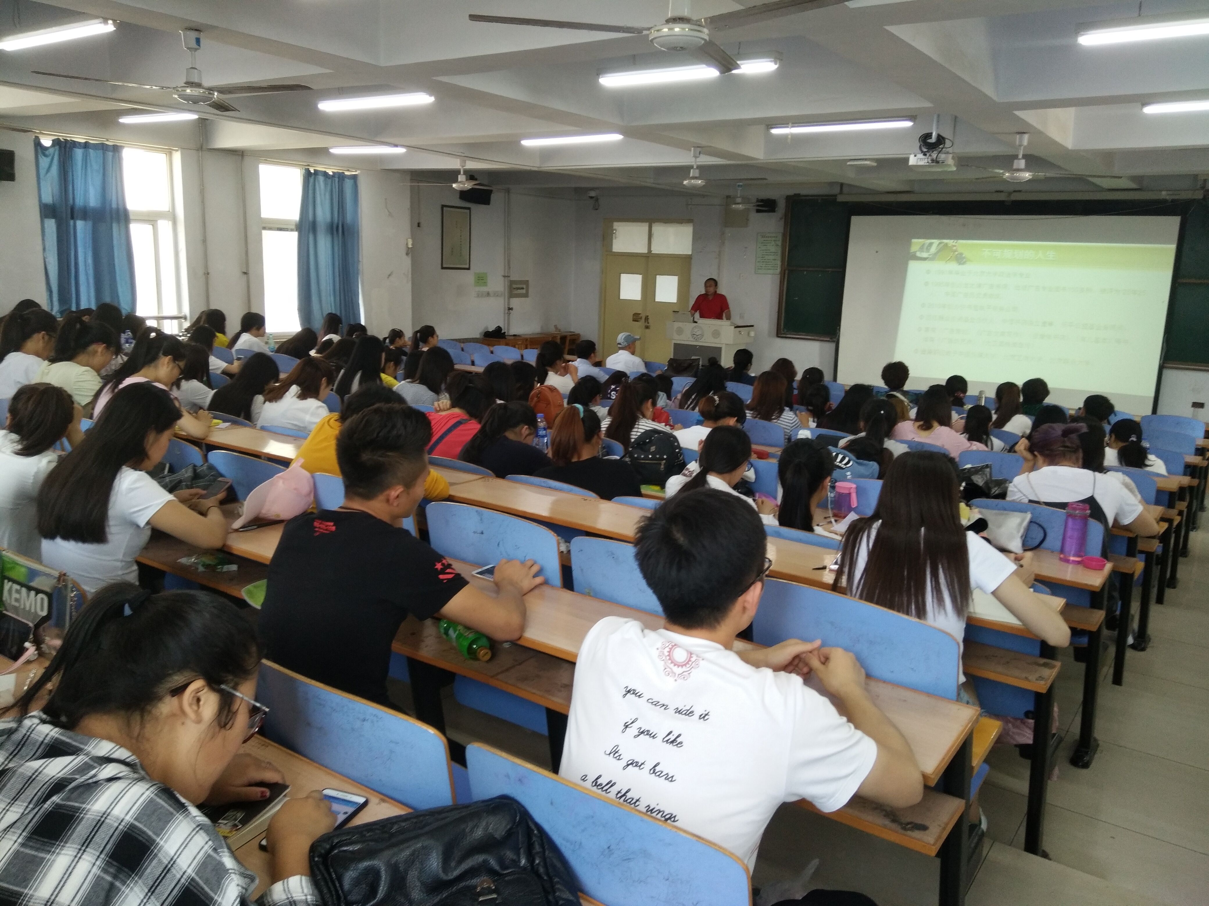 2017年5月17日太阳成tyc33455ccwww在综合楼712教室举办老员工创业创新专家讲座。此次讲座由徐智明专家主讲。王强、马玉杰、韩国春、祖秉君、母华敏、贾淑云、温梅等老师带领15、16级秘书学专业、社区管理与服务专业全体同学参加了此次讲座。