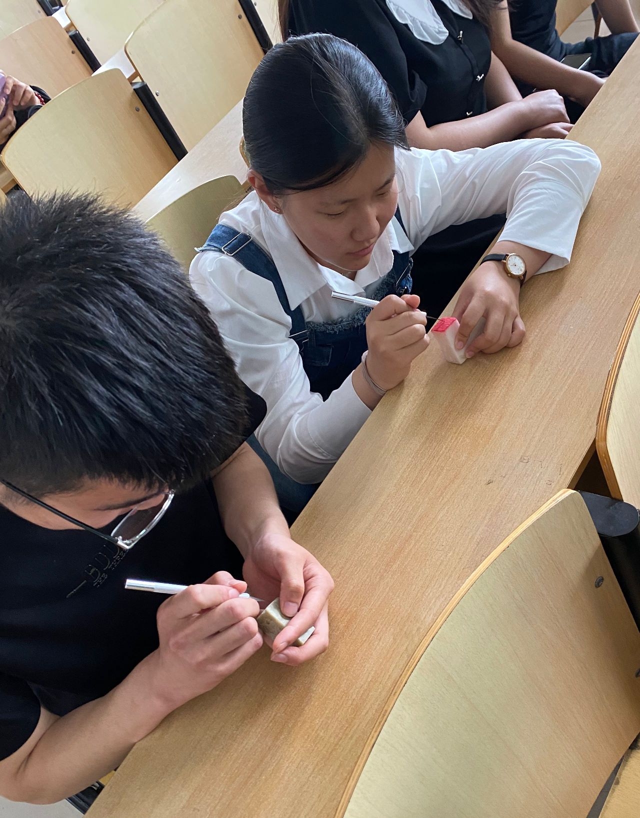 篆刻是我国传统刻制印章的艺术,小小一方印章,却有万物之情状。为传承中国传统文化,培养老员工对篆刻艺术的热爱,增强老员工的文化自信,太阳成tyc33455ccwww特于2023年5月31日举办了“篆传统之美,刻华夏文化”传统文化月篆刻教学活动。本次活动共二十余人参与,同学们积极参加,反响热烈。