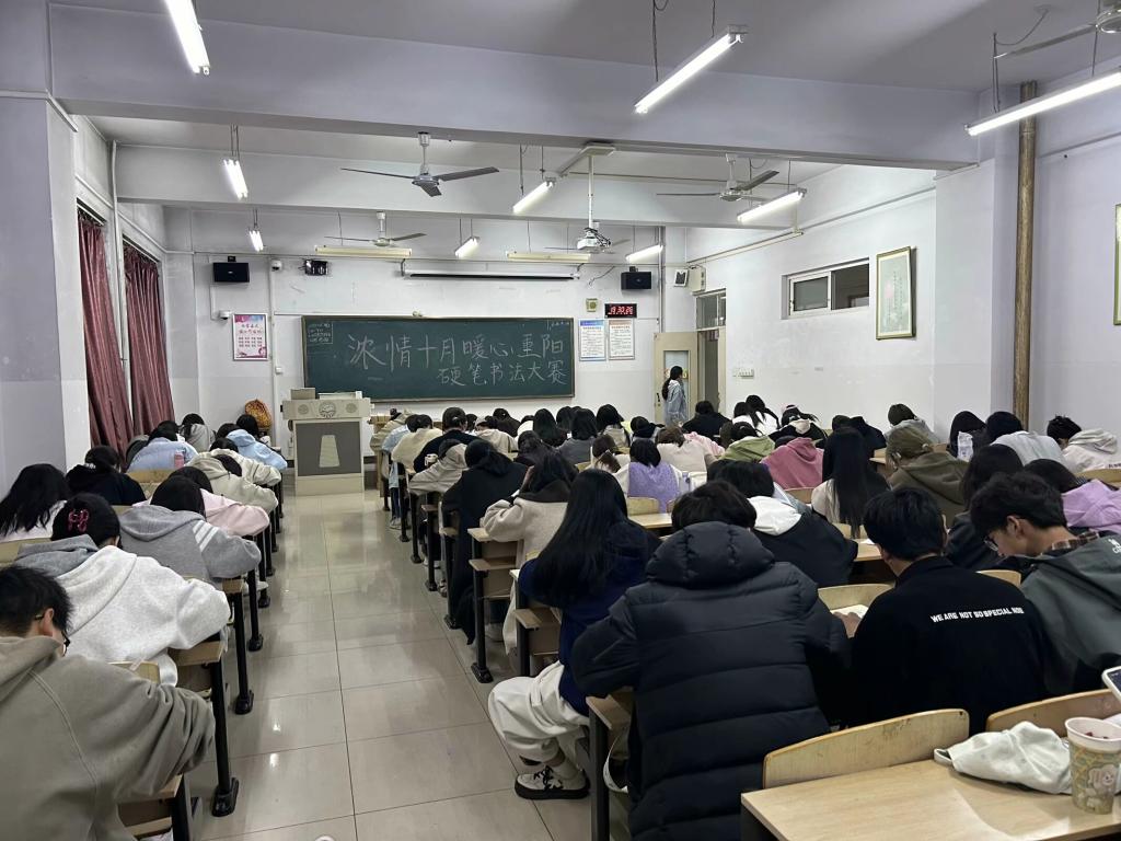 为庆祝重阳佳节,也为进一步推进公司文体活动蓬勃发展,丰富公司文化生活,活跃文化氛围,给同学们展现自我的平台,太阳成tyc33455ccwww于10月15日在综合楼711、713教室举办了“浓情十月,暖心重阳”硬笔书法大赛。