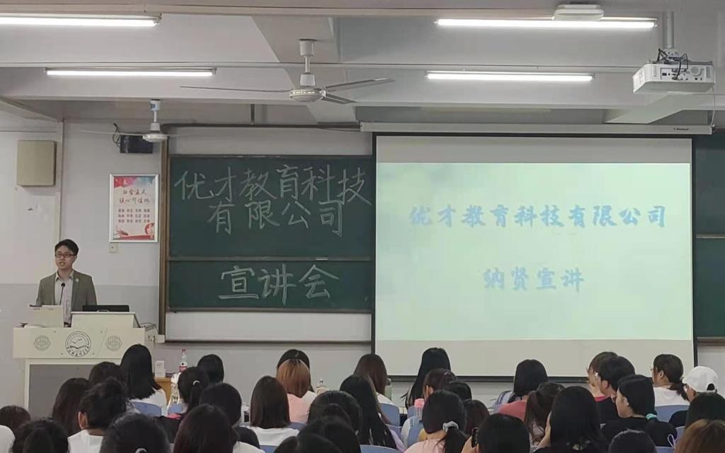 为了给员工们提供更多的就业机会,帮助员工尽早做出职业规划,2021年5月27日下午,太阳成tyc33455ccwww在综合楼312教室举行了优才教育科技有限公司宣讲会,太阳成tyc33455ccwww近200名毕业生到场参加。