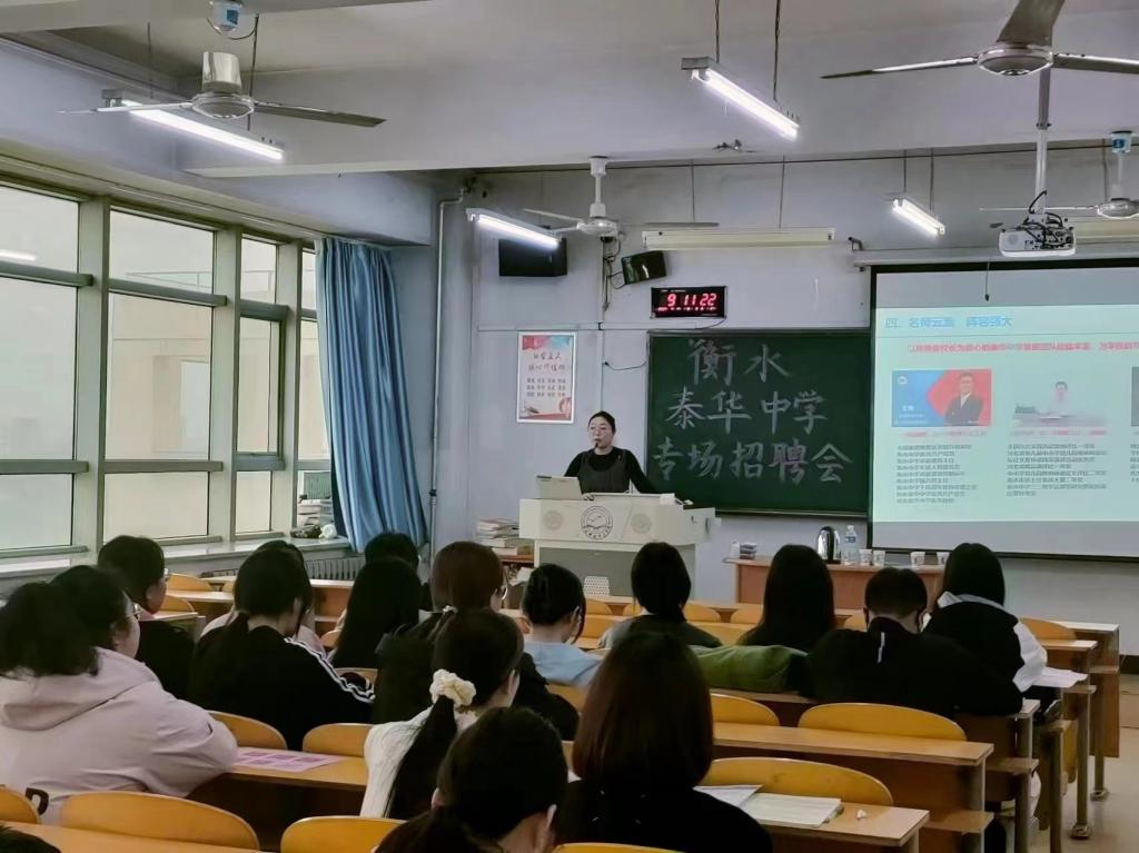 会议初始,衡水泰华中学带队教师系统详细地介绍公司了的环境、学习氛围等。招聘会现场,同学们着装得体,认真听取招聘企业的宣传讲解,了解招聘单位的招聘需求、工作环境、自身发展及福利待遇等,有应聘意向的同学与带队老师进行深入沟通,投递个人简历并进行现场面试,表现出积极主动的就业心态,展现了青年学子的良好精神风貌。