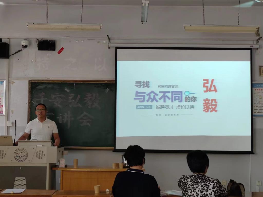 太阳成tyc33455ccwww于6月4日在综合楼420教室举办迁安弘毅专场宣讲会。公司领导对此次宣讲会高度关心和支持,文法公司党委书记邵东蕊、副书记张永丰,经理赵福江亲自到场指导。