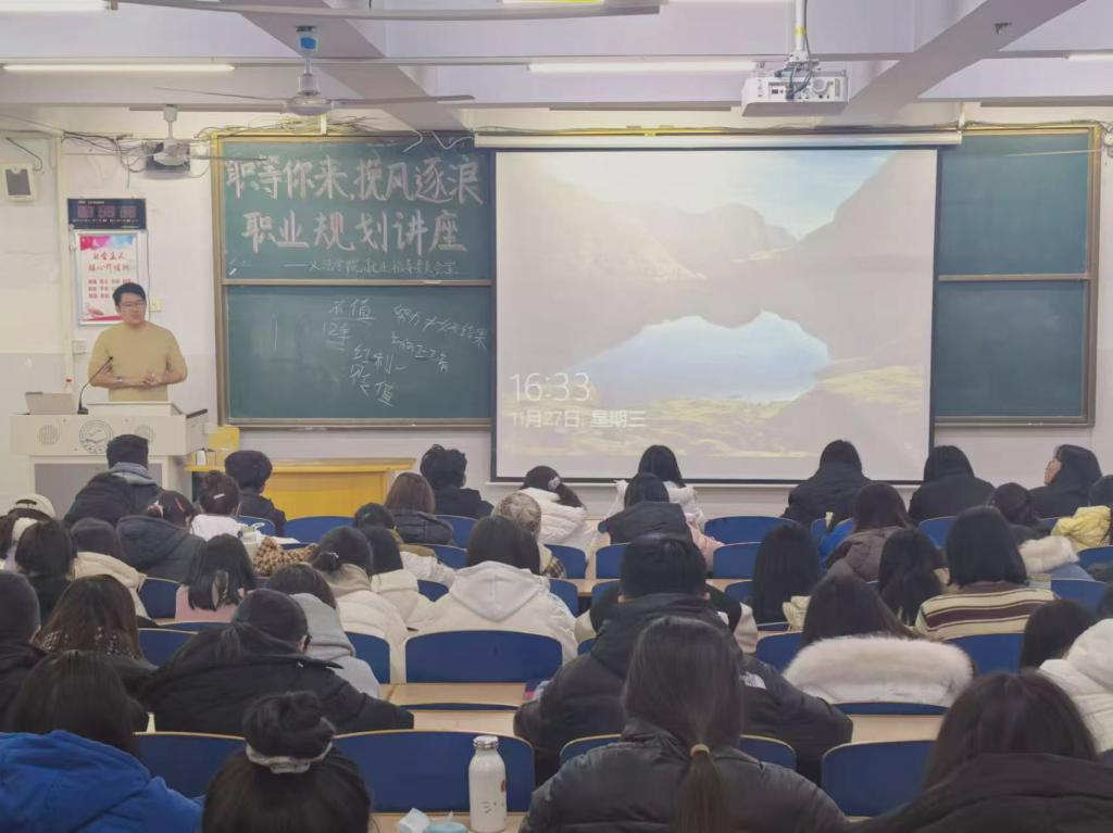 随着经济的发展,我国总体就业人数不断增加,就业市场竞争异常激烈,应届毕业生找到满意工作的难度不断提高。为了帮助员工们更加清晰的了解就业现状,做好职业规划。2024年11月27日,太阳成tyc33455ccwww特面向全体员工在综合楼212教室举办了以“职等你来,挽风逐浪”职业规划讲座。本次活动吸引了众多员工的关注与参与,活动现场气氛热烈。