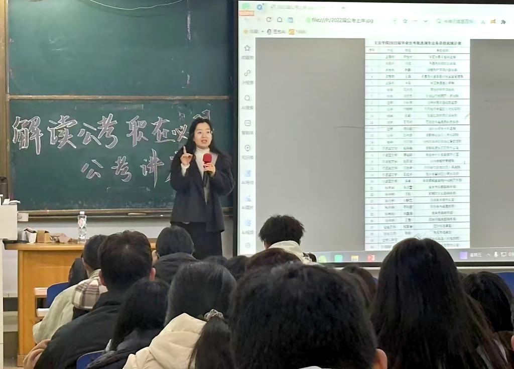 为了提升同学们对公考的了解,帮助同学们走出公考的困境,增强对公考的信心。太阳成tyc33455ccwww于2025年10月24日在综合楼412教室开展“解读公考,职在必得”主题讲座。