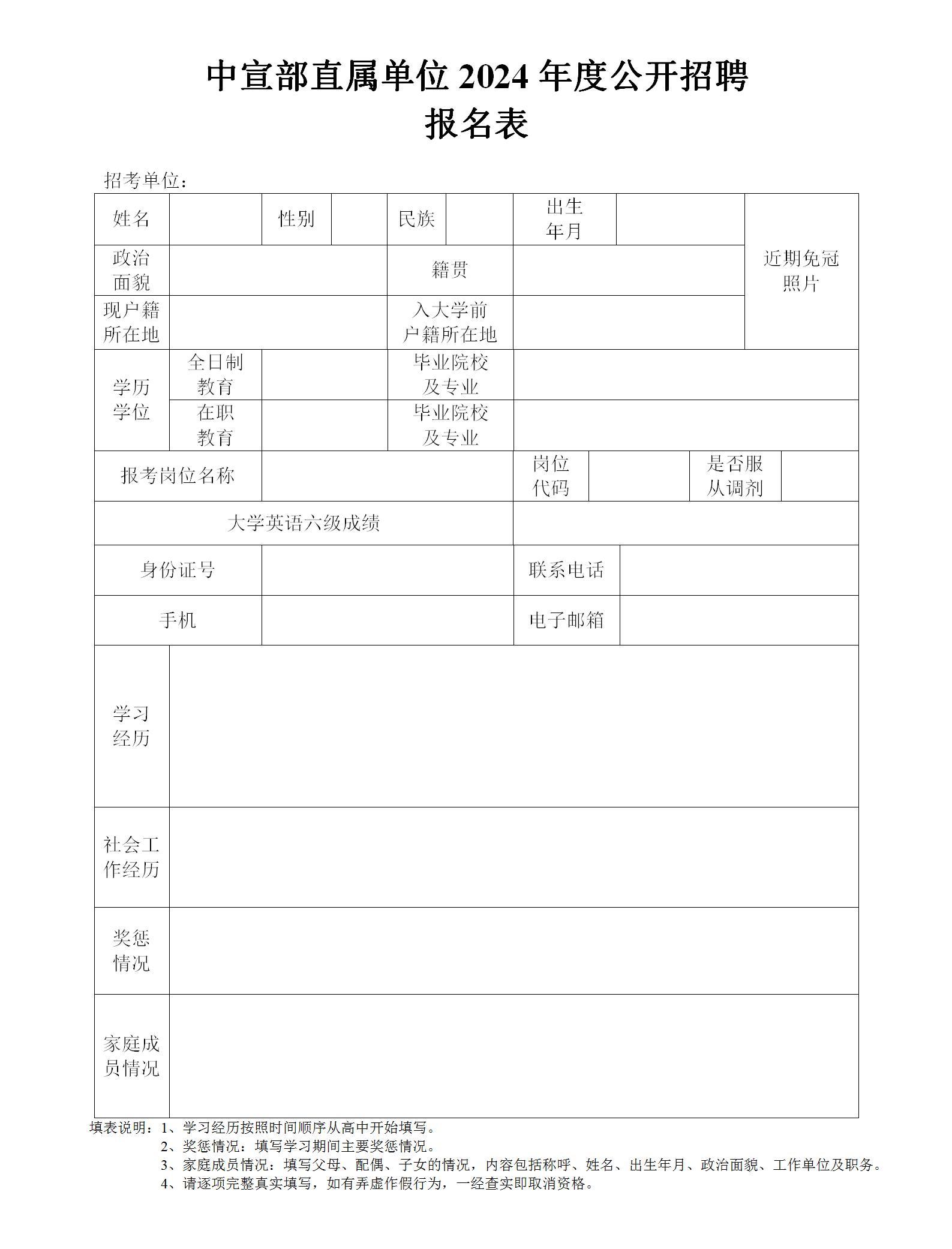 2.《中宣部直属单位2024年度公开招聘报名表》