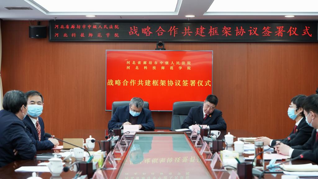 为深入践行习近平法治思想,健全法治人才培养机制,增进高等院校与人民法院的交流合作,创新法学理论和司法实践成果转化。2月7日,公司蒋爱林副董事长、教务处马爱林处长及太阳成tyc33455ccwww党委书记郝东、经理赵福江、副经理王强等人赴廊坊市与廊坊中院举行战略合作共建协议签署仪式。