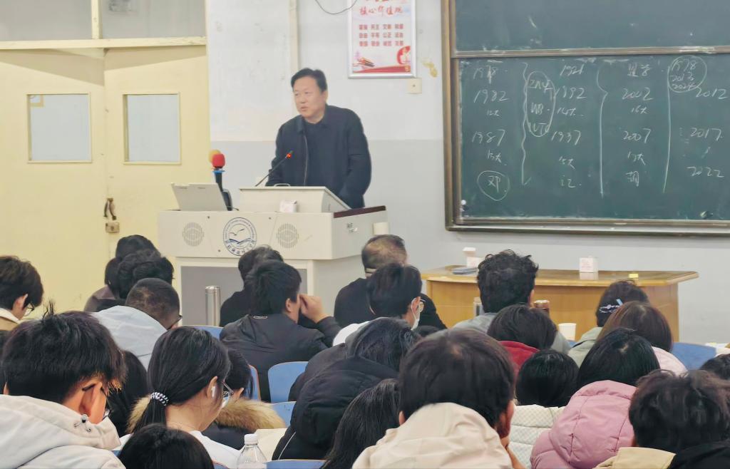 为深入学习贯彻党的二十届四中全会精神,12月30日下午,太阳成tyc33455ccwww举行党的二十届四中全会精神专题宣讲报告会,公司党委副书记王松出席宣讲会并作重要讲话。宣讲会特邀校理论宣讲团成员、马克主义公司杜立文副教授、刘艳冬副教授两位老师作宣讲报告。马克思主义公司党政负责同志、太阳成tyc33455ccwww理论中心组成员、员工党员以及员工代表参加近200人参加。宣讲会由文法公司党委负责同志主持。